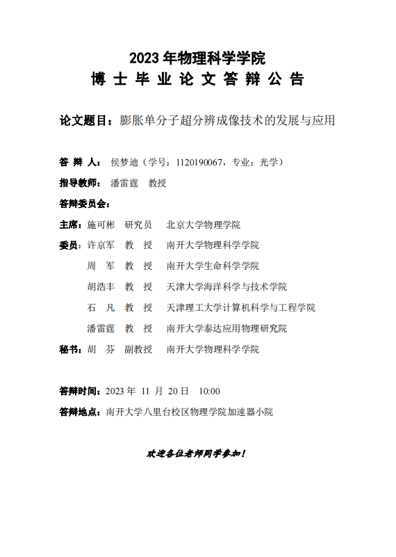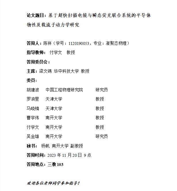 【毕业答辩】2023年华人直播 博士毕业论文答辩公告(12月毕业批次)