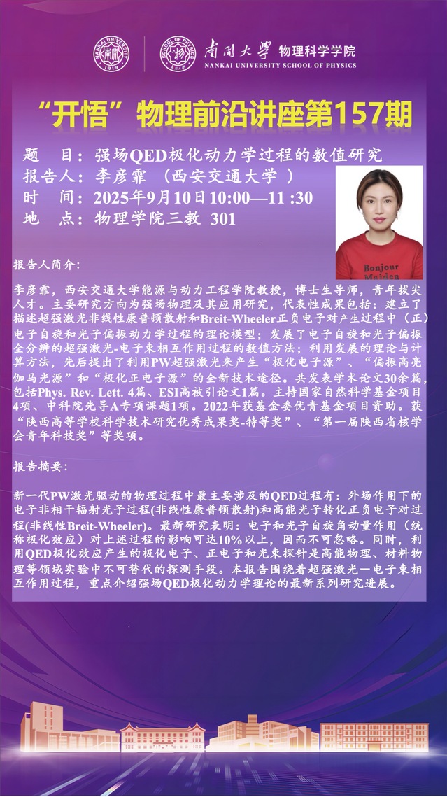 【“开悟” 物理前沿讲座(第157期)】强场QED极化动力学过程的数值研究