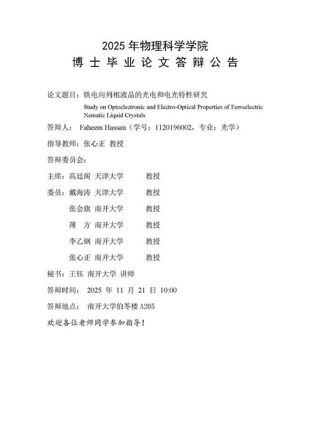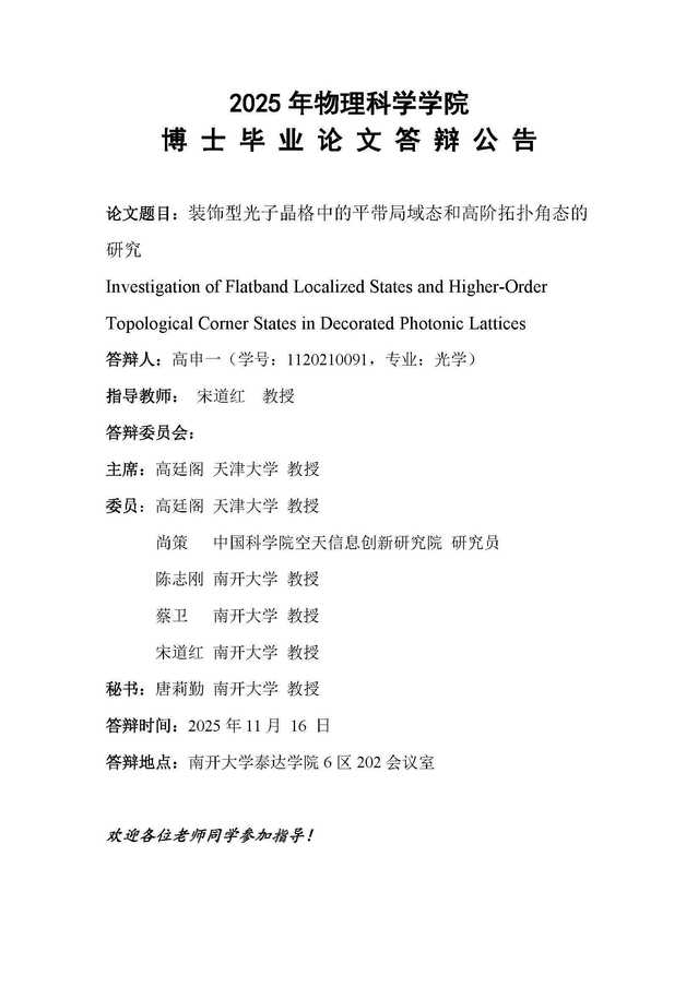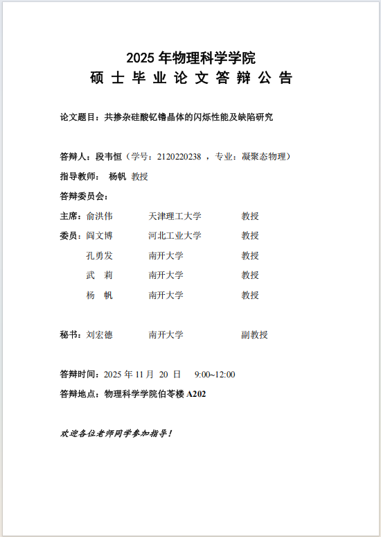 【毕业答辩】2025年秋季学期华人直播 博士、硕士毕业论文答辩公告