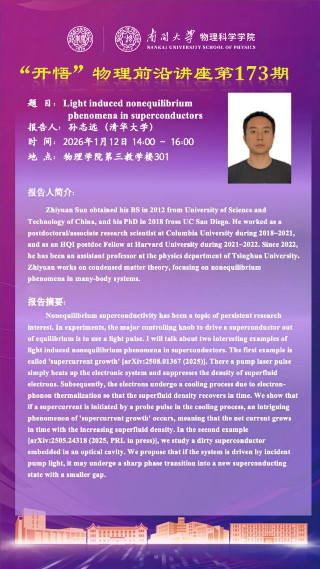 【“开悟” 物理前沿讲座 (第173期)】Light induced nonequilibrium phenomena in superconductors